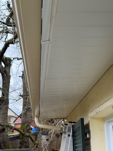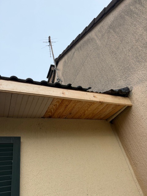 Réparation et recouvrement en PVC des caches moineaux en bois et changement des gouttières en gouttières alu
